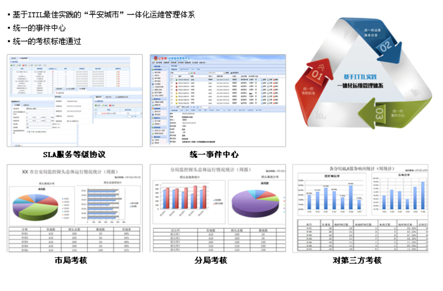 为全面解决监控系统所面临的城市视频监控运维难题,北塔软件推出视频监控运维管理系统,包含了城市视频系统监控、IT基础设施监控(IP承载网)、工单流程管理的专业、闭环、一体化运维管理系统。该方案全面响应了视频监控系统的核心运维需求,为其提供了以下解决方案: