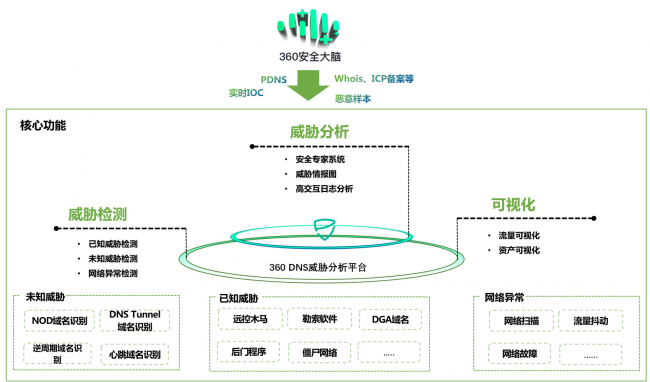 需求分析 产品概述 360 DNS威胁分析平台是基于360积累的高质量威胁情报及强大的威胁情报生产能力,利用关…